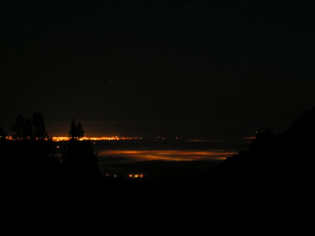 City Lights light up the fog.