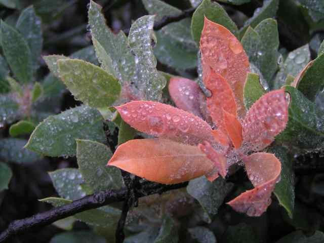 Manzanita leaves in the rain. (Ok, so maybe you have to use a little