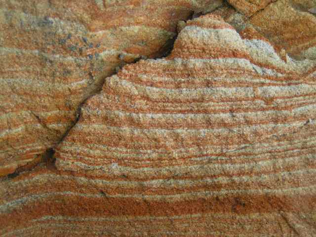 Apparent diffusion layers in weathered sandstone along a branch of the San Andreas Fault.